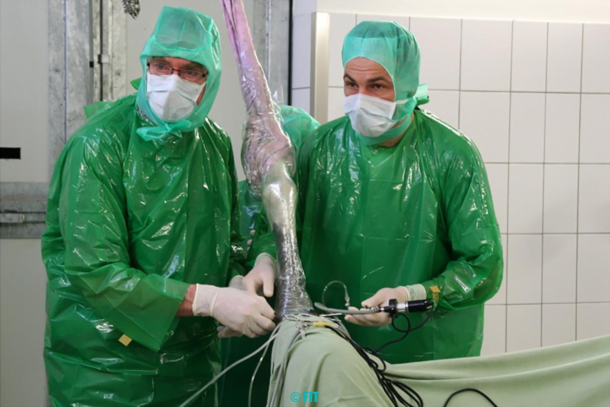 Bei mir in der Praxis fangen wir morgens um 8 Uhr mit einer Dienstbesprechung an, in der Patienten und Fahrrouten verteilt und Problempatienten besprochen werden. Das betrifft sowohl unsere stationär zur Diagnostik und Therapie aufgenommen Patienten, als auch solche, die vor Ort im Stall untersucht und behandelt werden. Nach der etwa zweistündigen Mittagspause wird der Routinebetrieb inklusive Operationen bis ca. 19 Uhr fortgesetzt.